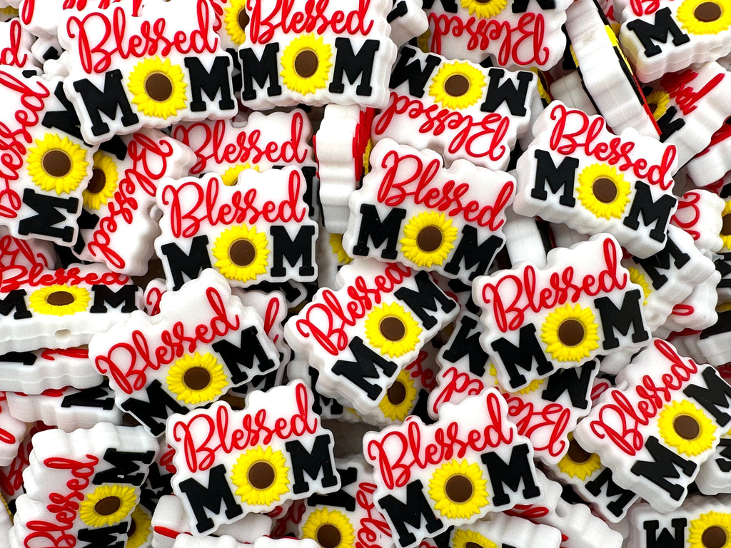 High quality Blessed Mom sunflower silicone beads!  29mm x 20mm beads with a hole size of 2mm.